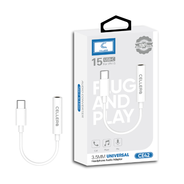 מתאם איכותי מבית CELLERA, מאפשר חיבור אוזניות וציוד שמע בחיבור AUX סטנדרטי למכשירים תומכי Type-C. קטן, נוח לנשיאה ומתאים לשימוש יומיומי.